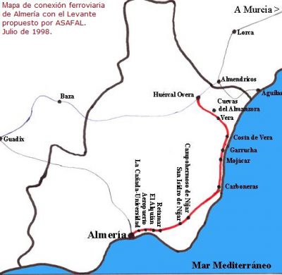 El 18 de Julio de 1998, esta asociación aprobó por unanimidad esta propuesta de recorrido para la conexión ferroviaria de Almería con el Levante.