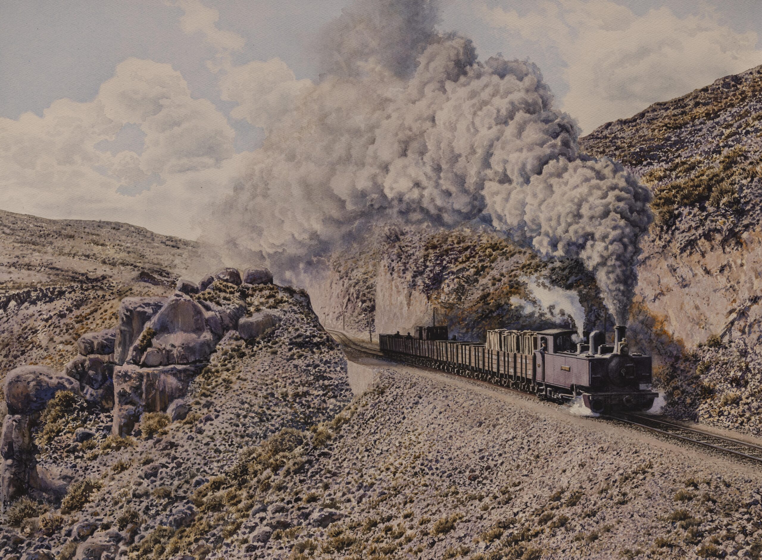 En la última edición del Concurso Nacional de Acuarela Julio Quesada que. con carácter bienal, tiene lugar en la localidad alicantina de Crevillente, ha obtenido el primer premio nuestro amigo y socio honorario, José Vicente Coves Navarro, con una pintura realista que representa un tren minero ascendente, del extinto ferrocarril de Lucainena de las Torres y Aguamarga, en las proximidades del puente del Molinillo. Además de su carácter artístico, la fidelidad de la recreación de una escena, que no existe en ninguna fotografía, aporta una información muy valiosa para entender cómo era la explotación ferroviaria de la línea cuando estaba en pleno apogeo. Los detalles, como la orientación de la locomotora o la carga, donde se aprecia el material para entibar minas y otros productos de suministro, convierten a este excepcional cuadro en un documento gráfico muy valioso.