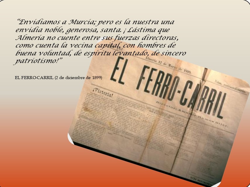 La línea de alta velocidad Murcia – Almería es una infraestructura fundamental para que la provincia almeriense se suba al “concierto de los países civilizados”, tal y como lo decían nuestros antepasados cuando a finales del siglo XIX luchaban porque el ferrocarril les conectara con el resto de la red ferroviaria española a través de Linares. Aquello se logró, tras muchos años de espera, en 1899 y marcaría un antes y un después en el desarrollo de Almería y su provincia.