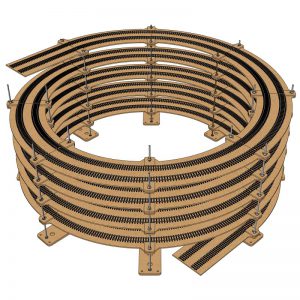 La ampliación de la Maqueta tendrá dos grandes rampas helicoidales de la firma Proses en los dos extremos del fondo de la maqueta, de aproximadamente 1m 50cm de diámero, de 3 niveles, doble vía , de unos 50cm alto, siendo éstas ocultas por las montañas que se recreen en su alrededor. Estas rampas son complejas de construir, pero permiten en poco espacio elevar un tren a niveles superiores.