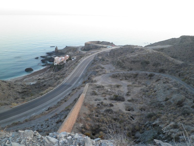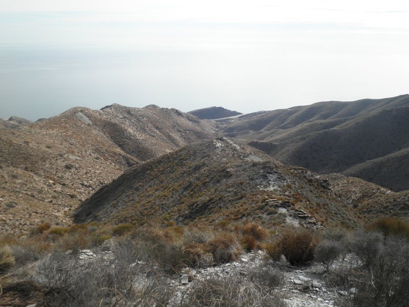 Uno de los objetivos de este recorrido por la sierra era llegar hasta una de las bocas del túnel que la Sociedad Argentífera de Almagrera perforó para que lo atravesara el pequeño ferrocarril que puso en marcha con el fin de aumentar la capacidad de transporte de mineral de hierro hacia el embarcadero de Cala de las Conchas. Con anterioridad, había en servicio un cable aéreo que hacía estas labores y que dio muchos problemas a sus propietarios. Aún se pueden contemplar los restos de la estación de carga y algún que otro basamento de los postes de sustentación, aunque todo muy deteriorado, por lo que es muy difícil comprender sin una explicación clara. Con el pico Tenerife a escasos metros, la visión del mar desde este punto es un privilegio.