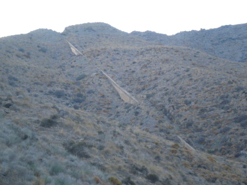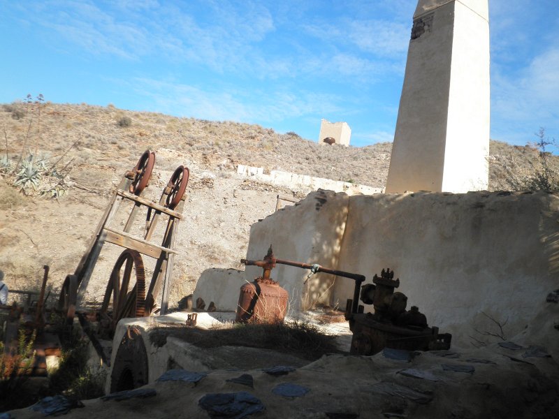 Tras un descenso prolongado hasta el lugar en donde se encontraban los vehículos, el grupo se dirigió hasta el barranco del Chaparral para comprobar el estado de la cabria que servía al pozo de la mina Encantada. Desgraciadamente, la situación de este elemento único del patrimonio industrial almeriense es alarmante, a pesar de ser un bien protegido.