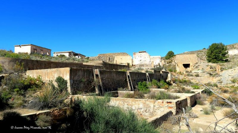 Volvimos a ganar altura zigzagueando sobre la loma y dejando atrás lo que se suponen los restos de la fundición Fuente Godoy. Encaramos ya la parte final de la ruta con nuevas vistas de las montañas multicolores y topándonos con un bonito acueducto semi oculto por la maleza. De nuevo tocaría ejercitar las piernas para ascender la fuerte pendiente y llegar a los cortijos de Bogaraya donde se realizó otro pequeño reagrupamiento con el fin de recuperar el aliento y continuar con la marcha. En este penúltimo tramo avanzamos viendo de nuevo a nuestra izquierda pozos y galerías que quedan en lo alto de las montañas y que los más mineros del grupo anotaron para poder visitar en otra ocasión.